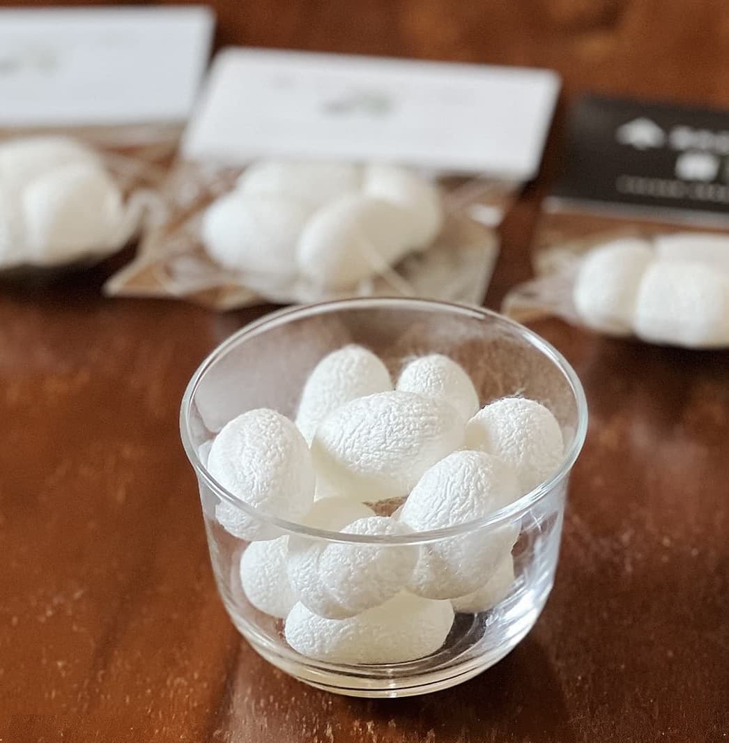 桑の葉だけで育った蚕が作る繭玉は、化学飼料、合成添加物を一切使用せず、天然の材料だけで丁寧に仕上げられたため、敏感肌の方にも安心してお使いいただけます。毎日の洗顔が、美しい輝きを纏った肌へと導く繭玉で、自然との調和を感じててください。しっとりと潤いのある肌を手に入れるために、ぜひ私たちの桑の葉だけで育った蚕が作った繭玉をお試しください。